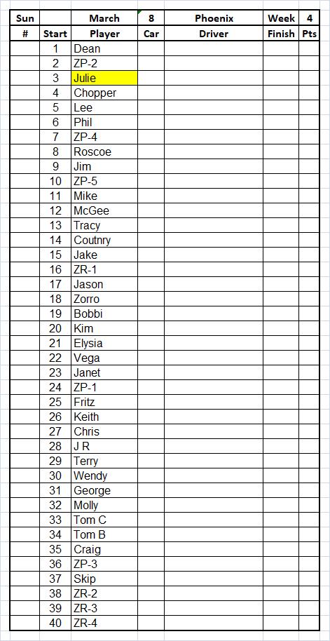 STARTING LINE UP